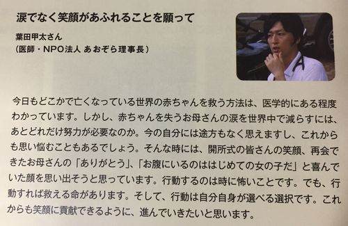 世界では年間約100万人の赤ちゃんが生まれたその日に亡くなっているそうです。